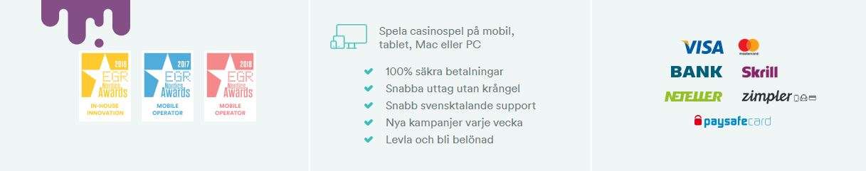 - Spela i SEK: Du slipper växlingsavgifter eftersom du får spela casino med valutan SEK. Genom detta får man också snabbare transaktioner, både för insättningar och uttag.